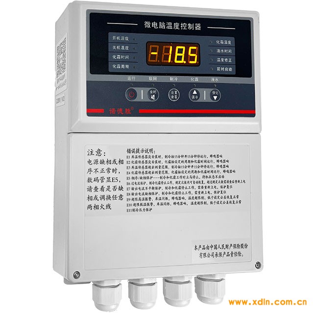 電壓220V/380V可用,提供制冷、化霜控制輸出,相序檢測、電流檢測和保護(hù)功能,具有溫度測量、顯