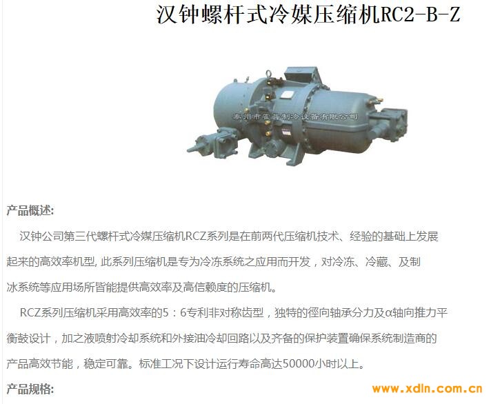 漢鐘螺桿式冷媒壓縮機(jī)RC2-B-Z